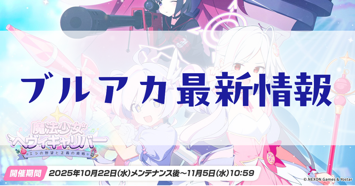 Xユーザーのブルーアーカイブ公式さん: 「【新情報②】 続きましてはこちら! 10月22日(水)メンテナンス後、新イベント「魔法少女ヘヴィキャリバー~エラの野望と正義の資格~」が開催されます。 今回のイベントでは、生徒「ラブ」さんをイベント報酬としてお迎えすることができますよ♪ https://t.co/r3EL5CNCNc」 / X